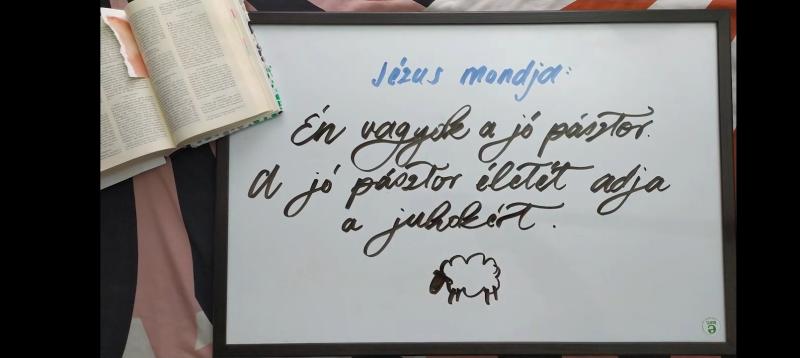A húsvéti csendesnapok keretében az alsós gyerekekkel ezt a történetet idéztük fel a Bibliából. Jézus, a Jó Pásztor észreveszi, hogy egy juhocskája elkóborolt. A kilencvenkilencet karámba zárva és hátra hagyva elmegy és megkeresi az elveszett bárányt. A példázat azt szeretné bemutatni, hogy mi is hasonló törődésben és szeretetben részesülünk Isten közelében. A Húsvét története is arra tanít bennünket, hogy Isten keresi az embereket és mindent megtesz, hogy újra találkozzon velünk és átöleljen bennünket.